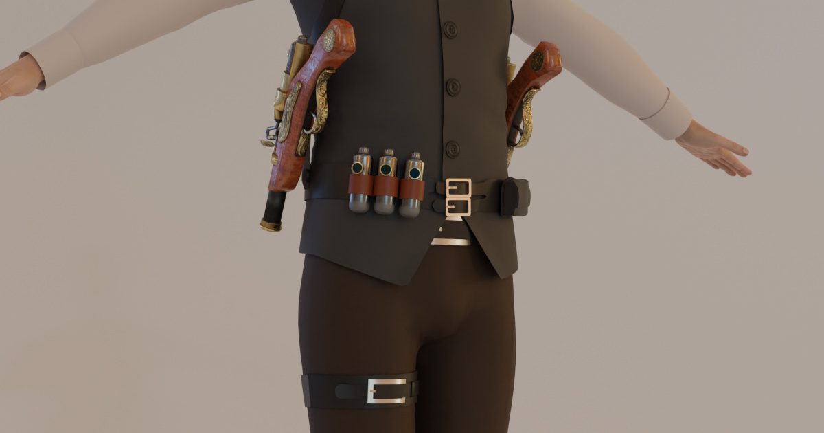 というので、同じくBlenderとSimple Cloth Proアドオンで、作りかけだったスティームパンク用のコスチュームを作成。アドオンも少しだけ思ったように使えるようになってきたかと。
